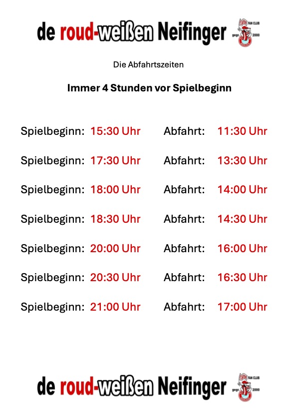 Über folgende Tabelle seht ihr für welche Spiele ihr noch Karten bestellen könnt. Bestellungen bitte an den 1. Vorstand Manuel Rasp per Whatsapp senden. Abfahrt ist immer 4 Stunden vor Spielbeginn.